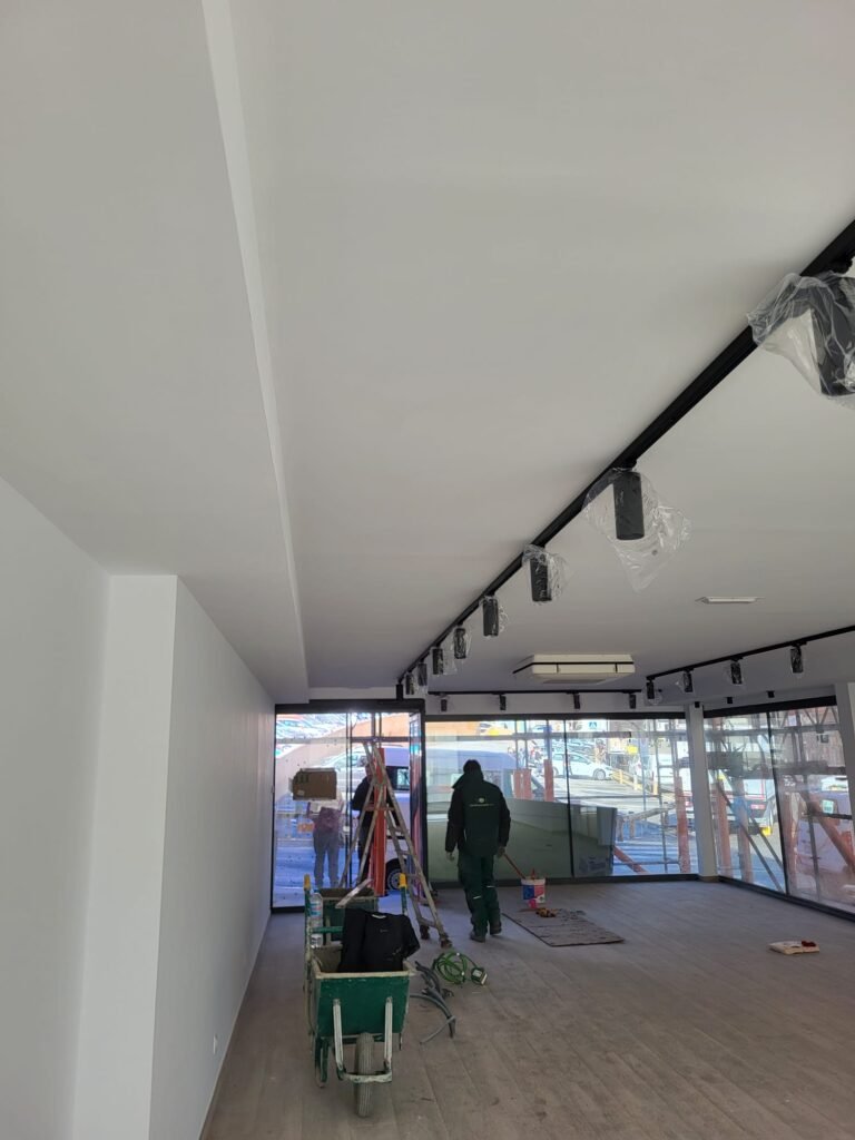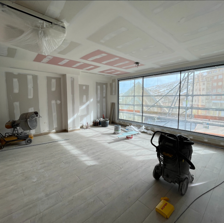 La intervención se ha centrado en la ejecución completa de los sistemas de tabiquería y techos de yeso laminado, elementos clave para la configuración de los espacios interiores del edificio. Estos trabajos han permitido obtener superficies limpias, precisas y funcionales, acordes con el lenguaje arquitectónico sobrio y elegante del conjunto.